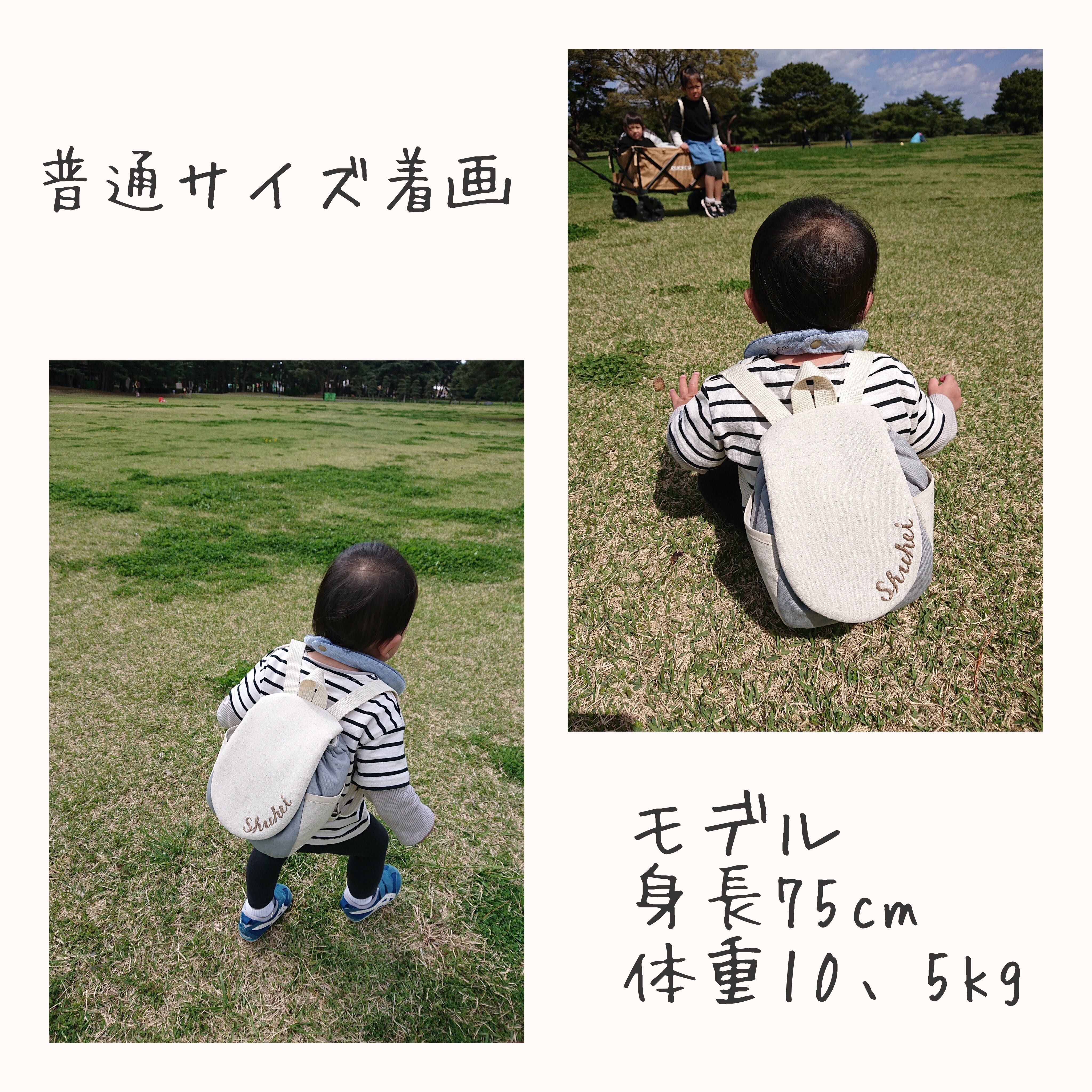 普通サイズは身体の大きさ、用途によっても変わってきますが、だいたい1歳~2歳ぐらいまでのサイズとなっております。