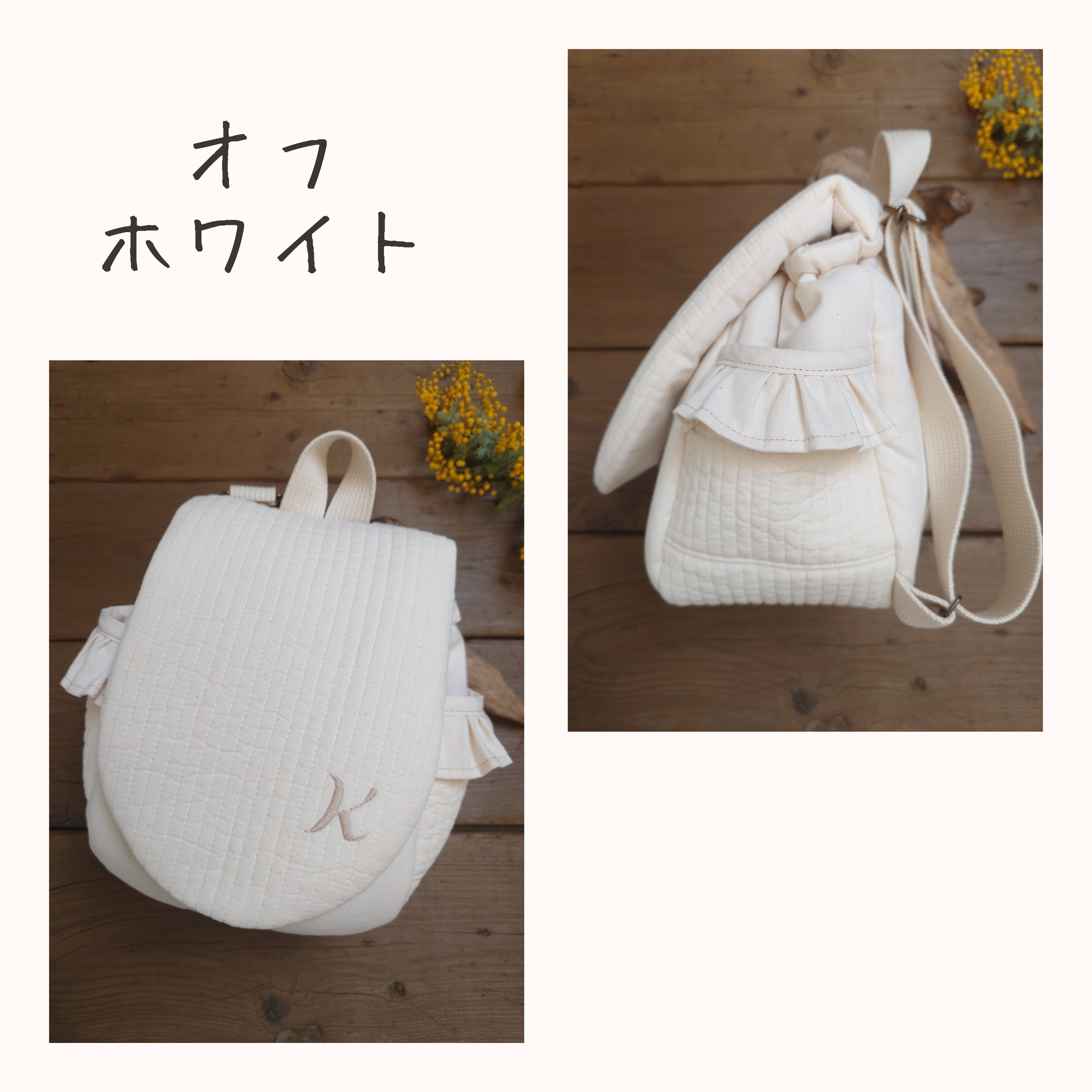 初めてのリュック、出産祝い、お誕生日ギフトにぴったりな世界でひとつだけのお名前刺繍入り、人気のヌビ生地のベビーリュックになります。