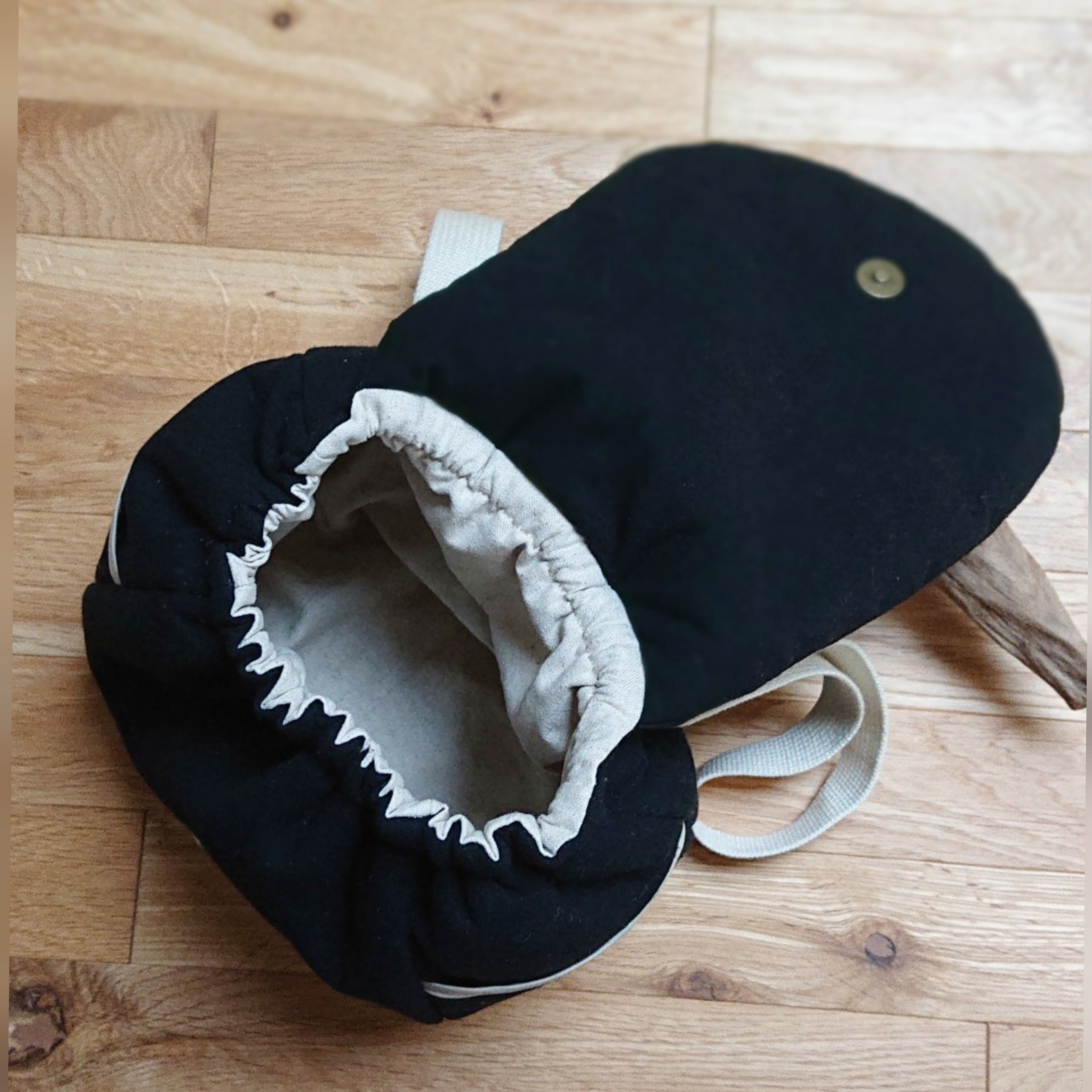 ふたはマグネットボタンで留まるようになっております。金属アレルギーのあるお子様用にマジックテープに、肩ベルトの金具はプラスチックに変更可能です。