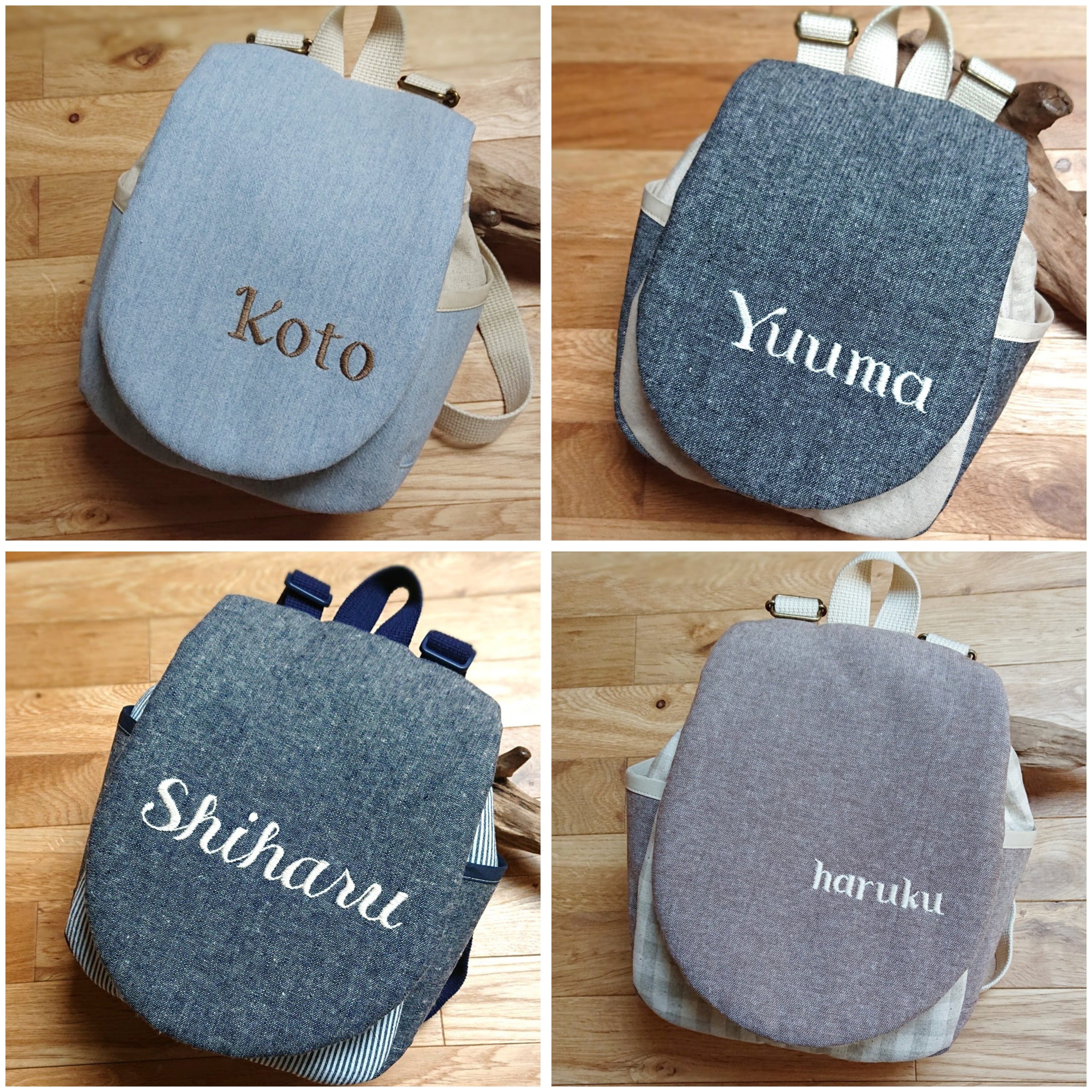 初めてのリュック、出産祝い、お誕生日ギフトにぴったりな世界でひとつだけのお名前刺繍入りのベビーリュックになります。